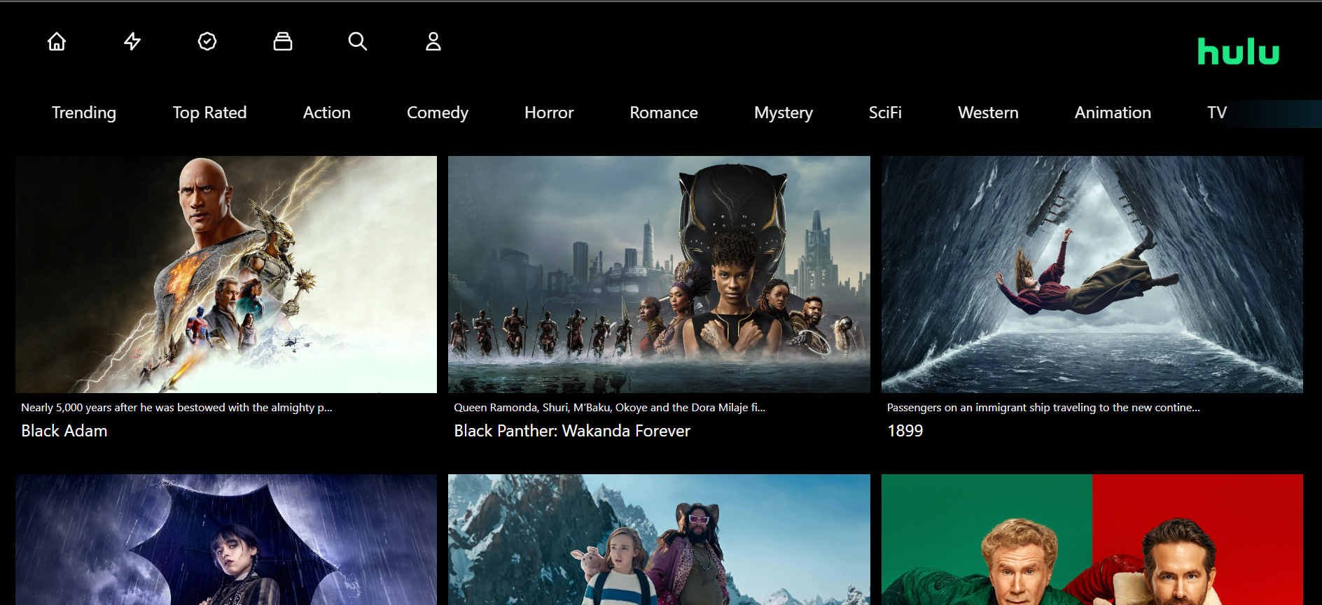 Developed a fully responsive clone of the popular streaming app Hulu using Next.js and integrating multiple APIs, including the TMDb and OMDb APIs. Created a user-friendly interface with features such as an animated carousel and dynamic routing. Utilized Axios to process API requests and retrieve data, dynamically representing the data through skeleton loading states. The resulting app provided a seamless and enjoyable user experience for streaming enthusiasts.